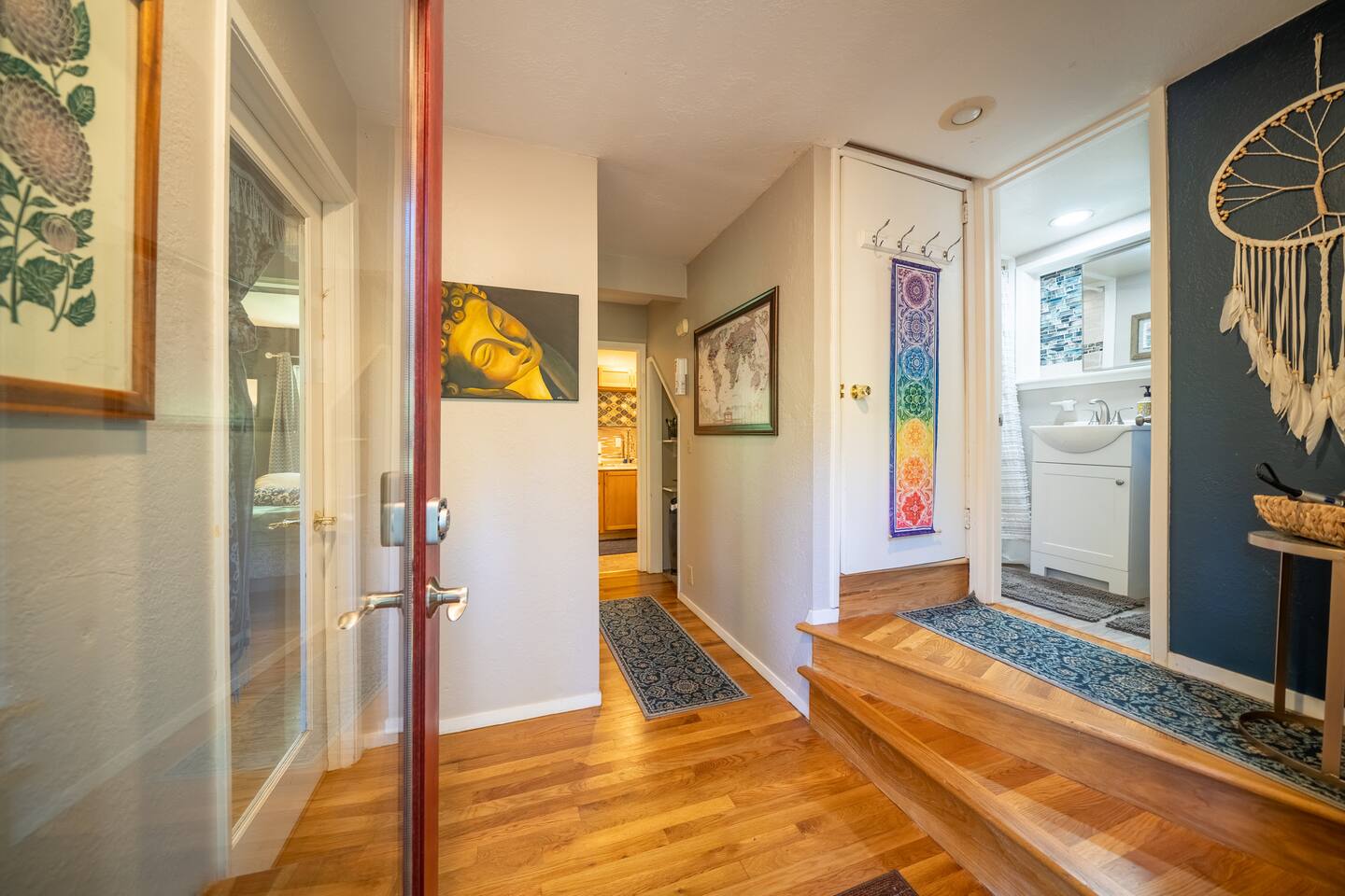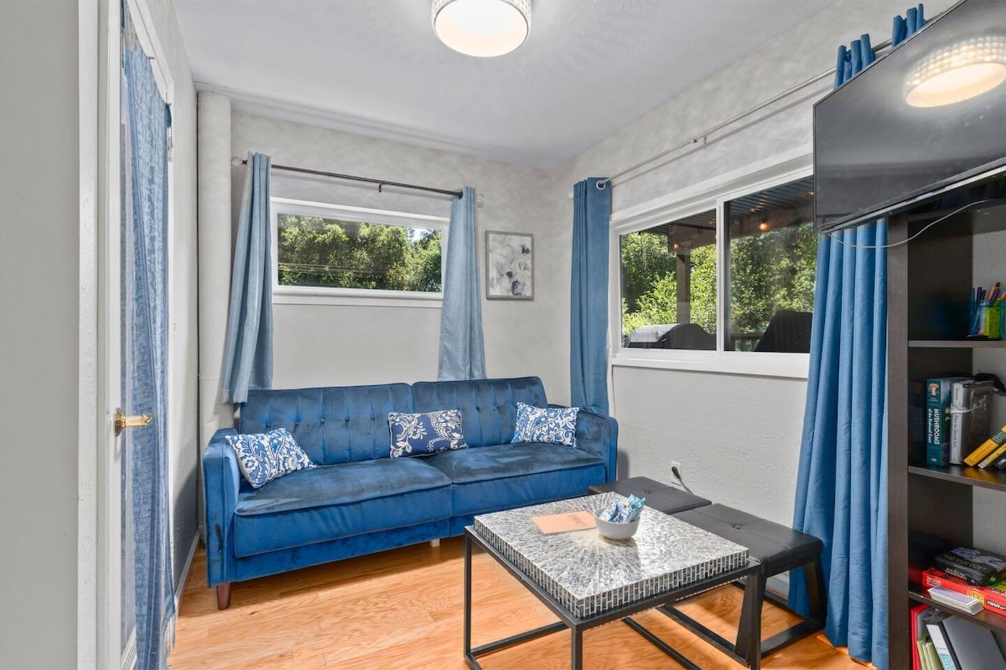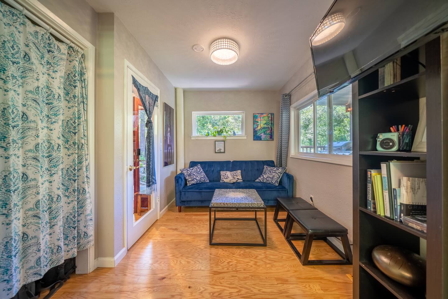 The home is not accessible to who cannot climb stairs. You’ll climb about 70 steps to access the house, but once you’re at the top, the views are well worth the climb! If you have little ones, please consider their safety on the steep stairs before booking. This unit is the lower unit. There is a separate unit above. The floors, unfortunately, allow a fair amount of sound to carry. We do our best to remind guests of quiet hours and we’ve sound proofed as much as possible but sometimes the noise does carry. Other Considerations and Rules (Full rules listed in "Rules" section) + For stays over 28 days, utilities will be capped at an amount detailed in the separate agreement. Overages will be assessed on a monthly basis. + No (outdoor) fires are allowed on the property due to the high risk of fires spreading through the forest. + STRICT enforcement of the noise policy (9pm-8am). + Only flush toilet paper. The septic system is delicate and damages will incur additional costs. + Ring technology is present outside the home to monitor the entrances and noise levels. We want to ensure our guests have a peaceful stay and that we are being good neighbors to the rest of the community! + While you will most likely not encounter another person, our landscaper, spa, or maintenance people may need to access the area around the property during daytime hours. You may see or hear these service professionals during your stay as they let themselves into the backyard to service as needed. Please be sure to ask about this before booking if you think it might be an issue for you. + In the rainy season, you may experience power outages that are out of our control, road closures due to trees falling or accidents, or other weather related inconveniences. No refunds will be provided for these circumstances, we encourage guests to purchase travel protection. + All dogs must be kept on a leash. There may be other dogs on the property. + TV is a smart tv with streaming capabilities. There is no cable or local channels. Bring your own login to enjoy streaming apps. + If you’re looking for an early check-in or late check-out, we may be able to accommodate your request depending on availability. A $30 fee applies for either option to help us coordinate with our cleaning team. + We provide fresh towels and linens for each guest. If you’d like an extra towel set during your stay, we’re happy to provide it for a $10 fee per set.