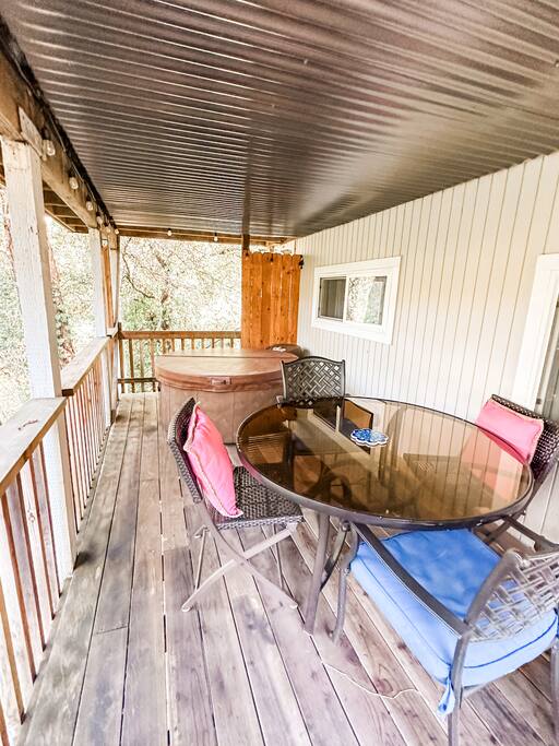 1 bedroom, 1 bath studio unit in a beautiful A-Frame in the trees of Aptos, CA (Permit 221336). This is the lower of two units in the house and features an efficiency kitchen, a full bathroom, a private deck with hot tub, bedroom, and living room area. Walking distance from coffee, grocery stores, local wine tasting, amazing hikes, and wonderful restaurants. There is free parking at the base of the hill for up to two cars parked in a row. *New* 2 person hot tub on the private deck!